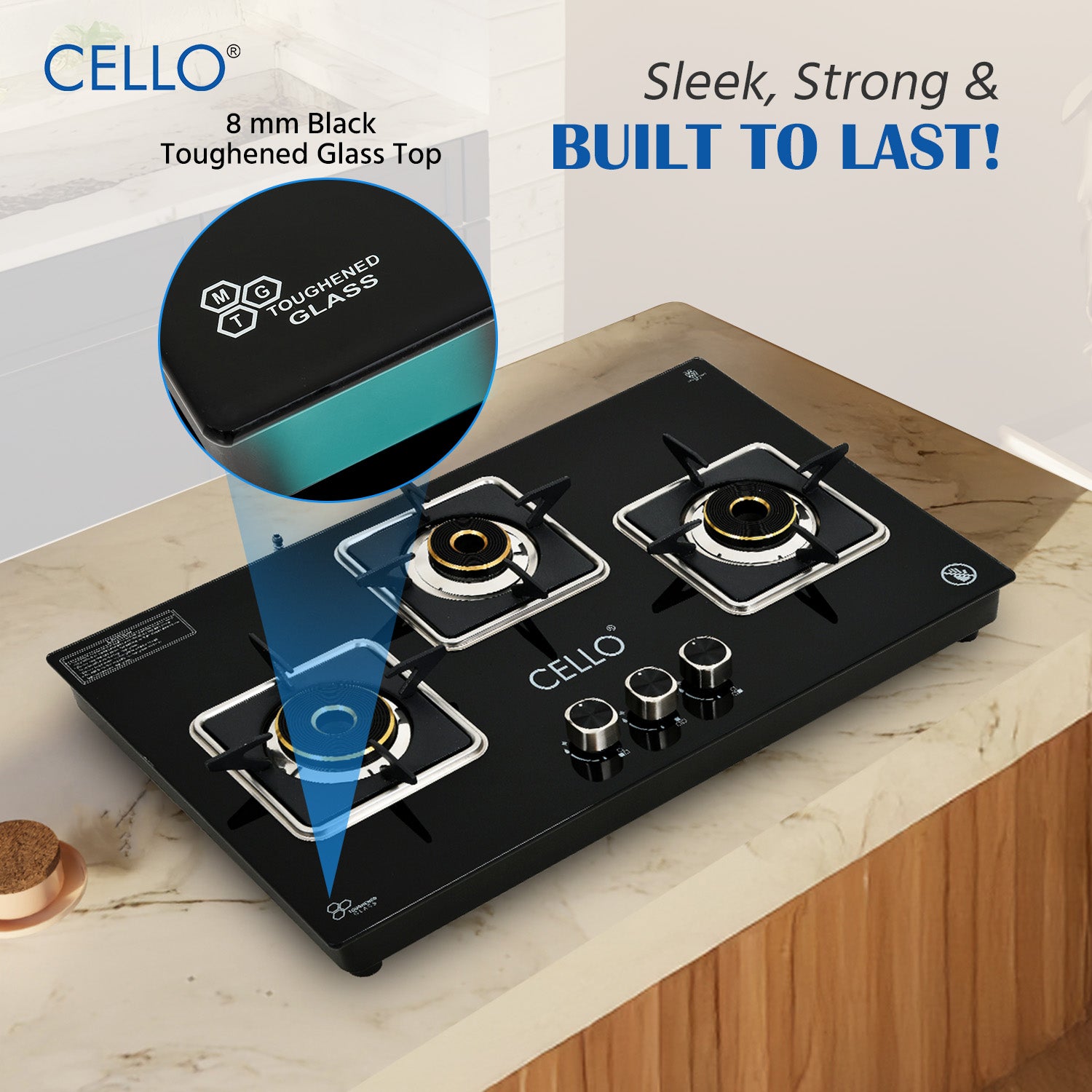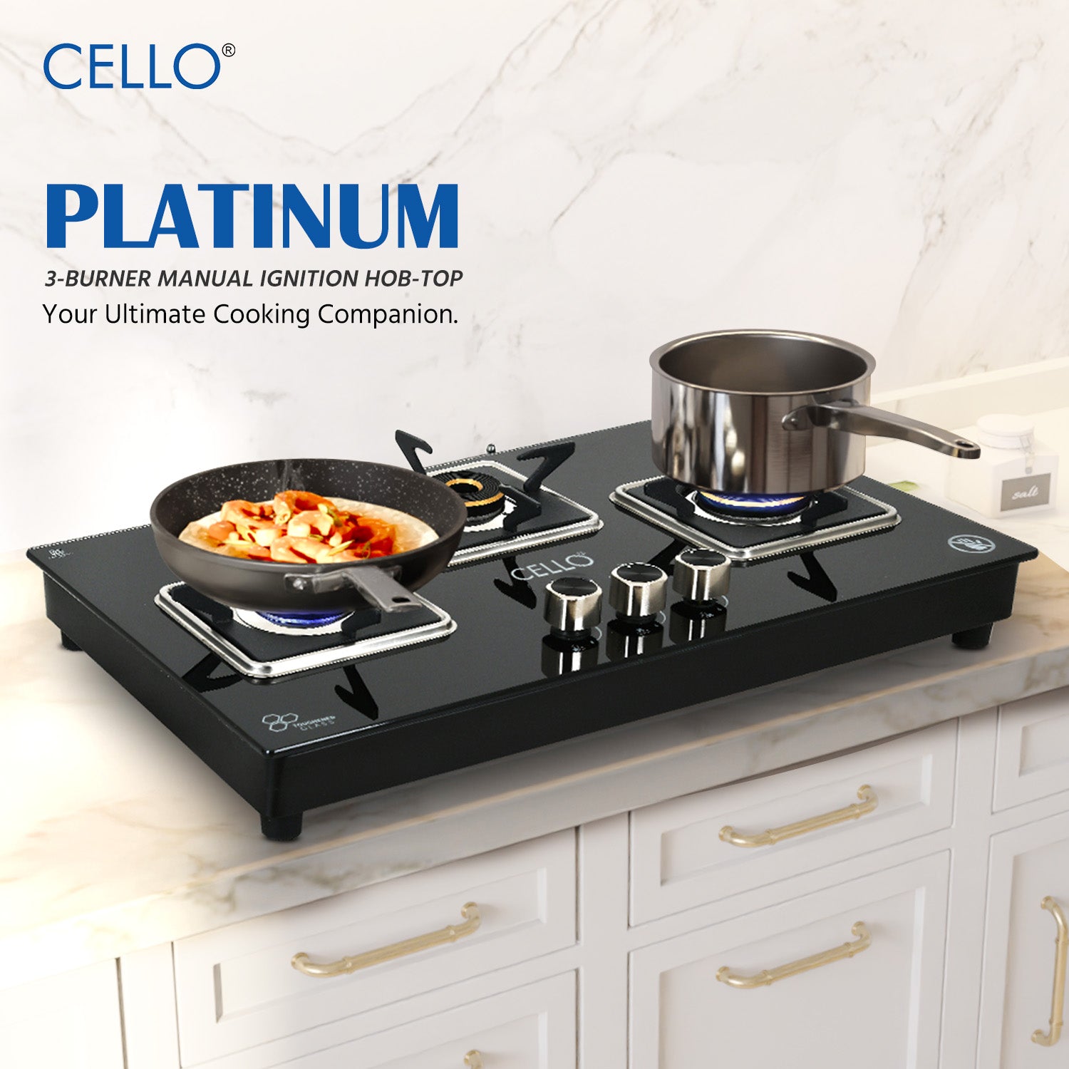 CELLO Platinum 3 Burners LPG Gas Stove - Efficient & Stylish Cooking Solution